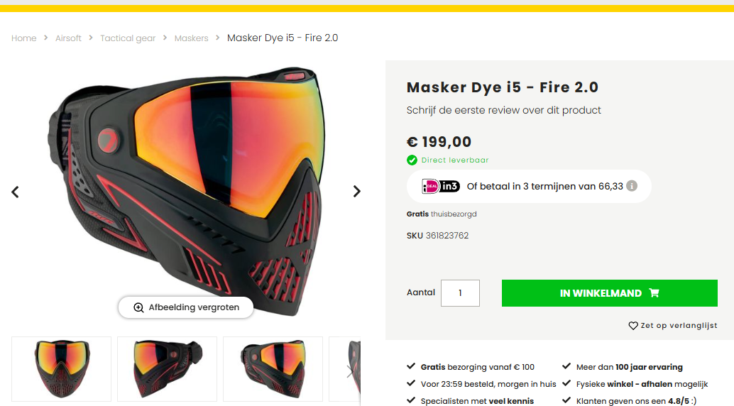 Masker Dye i5 - Fire 2.0 + Lens i4/i5 - Clear | Splinternieuw | Ongebruikt