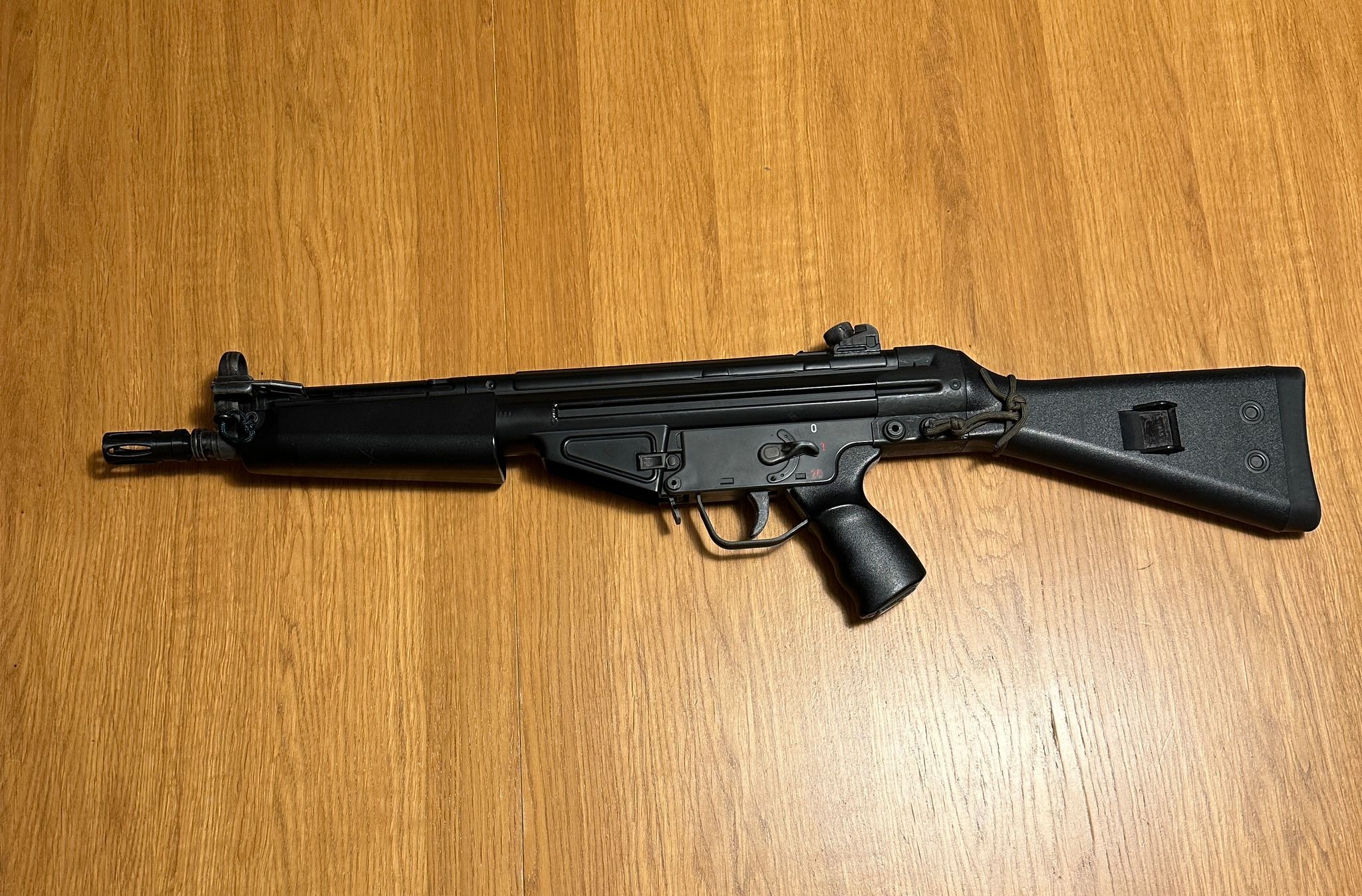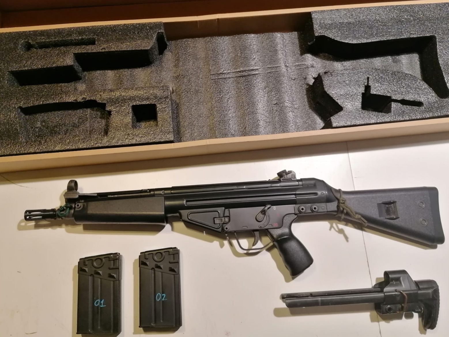 It has been rewired to allow the battery to be placed either in the stock or in the handguard, as preferred.