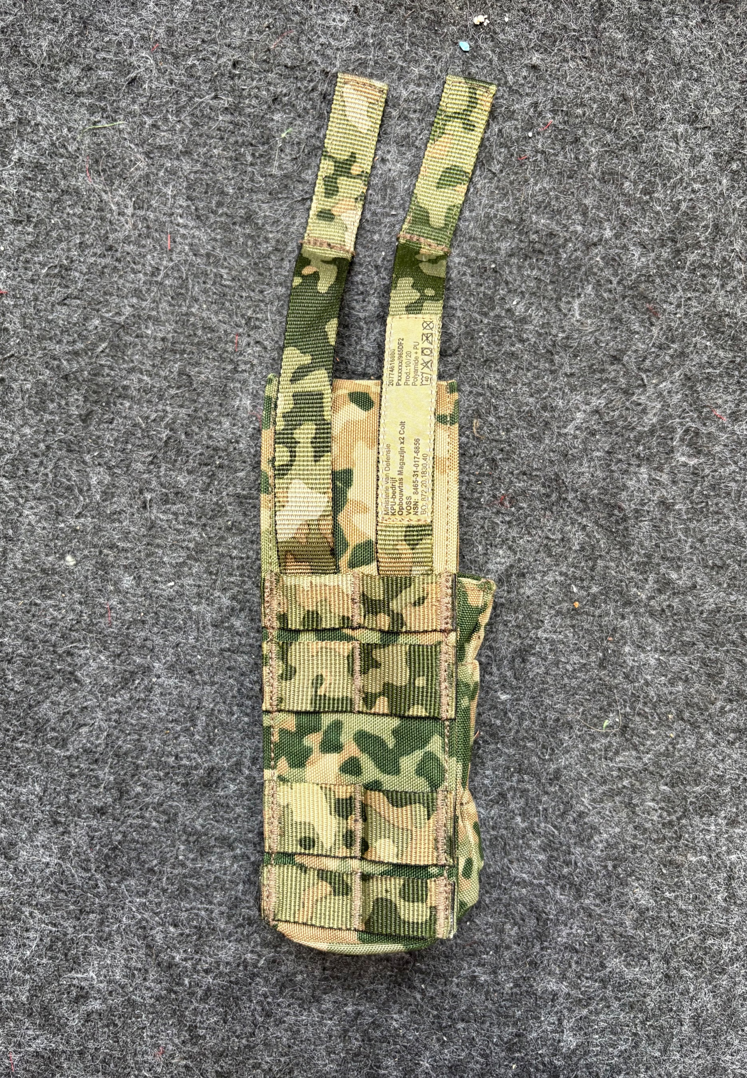 Een NFP multitone dubbele magazijn tas voor m4/ar-15 magazijnen. De tas is in goede staat. Alleen is het elastiek losgemaakt maar inbegrepen.