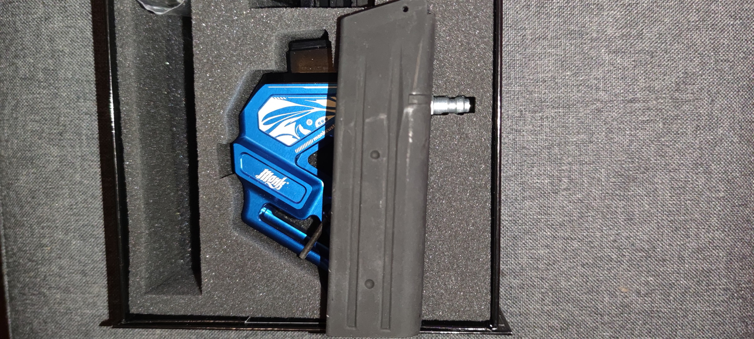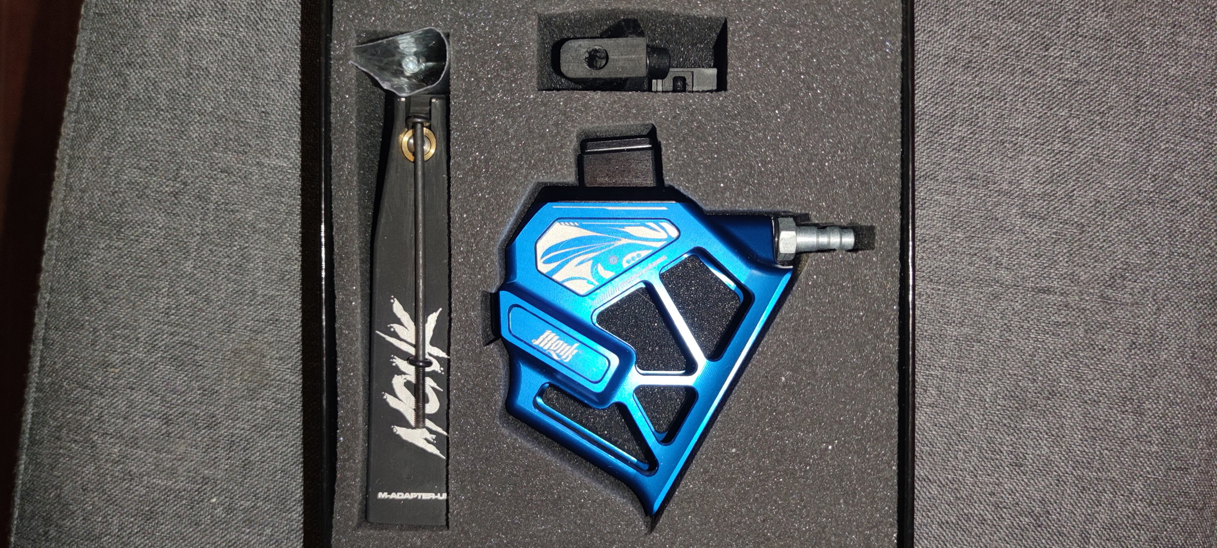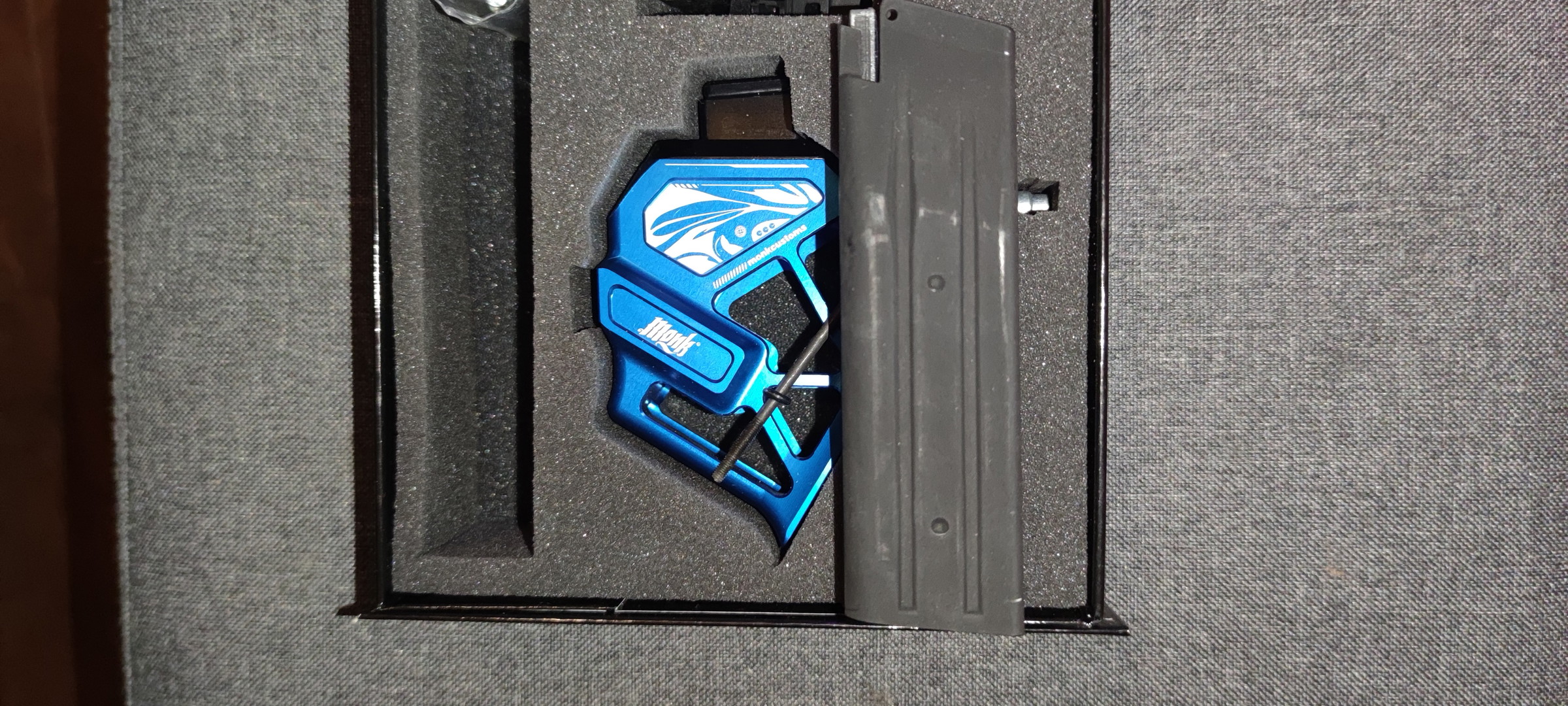 Selling my Monk Customs skeletonized adapter in full color blue, including an ultralight mag shell.