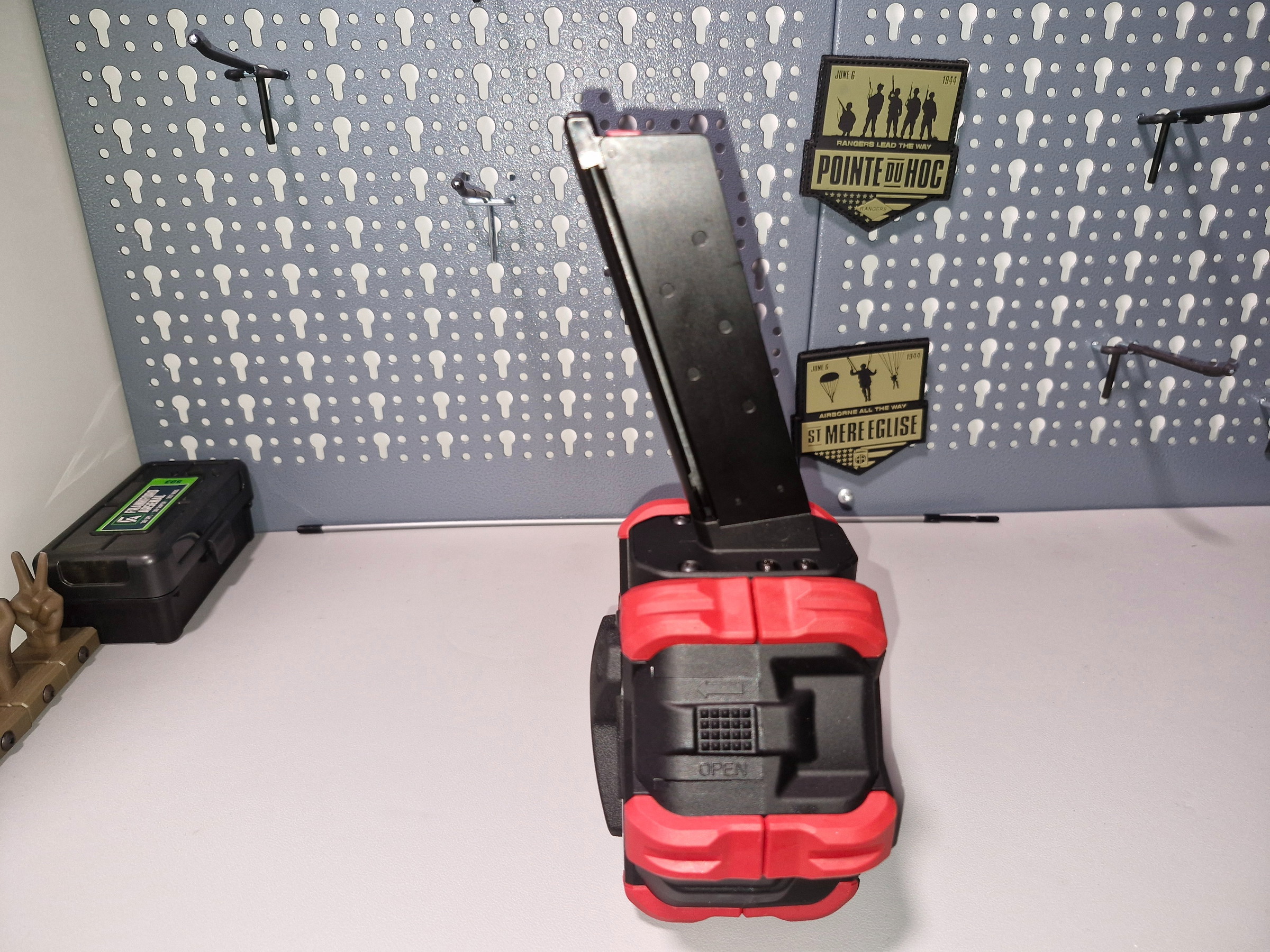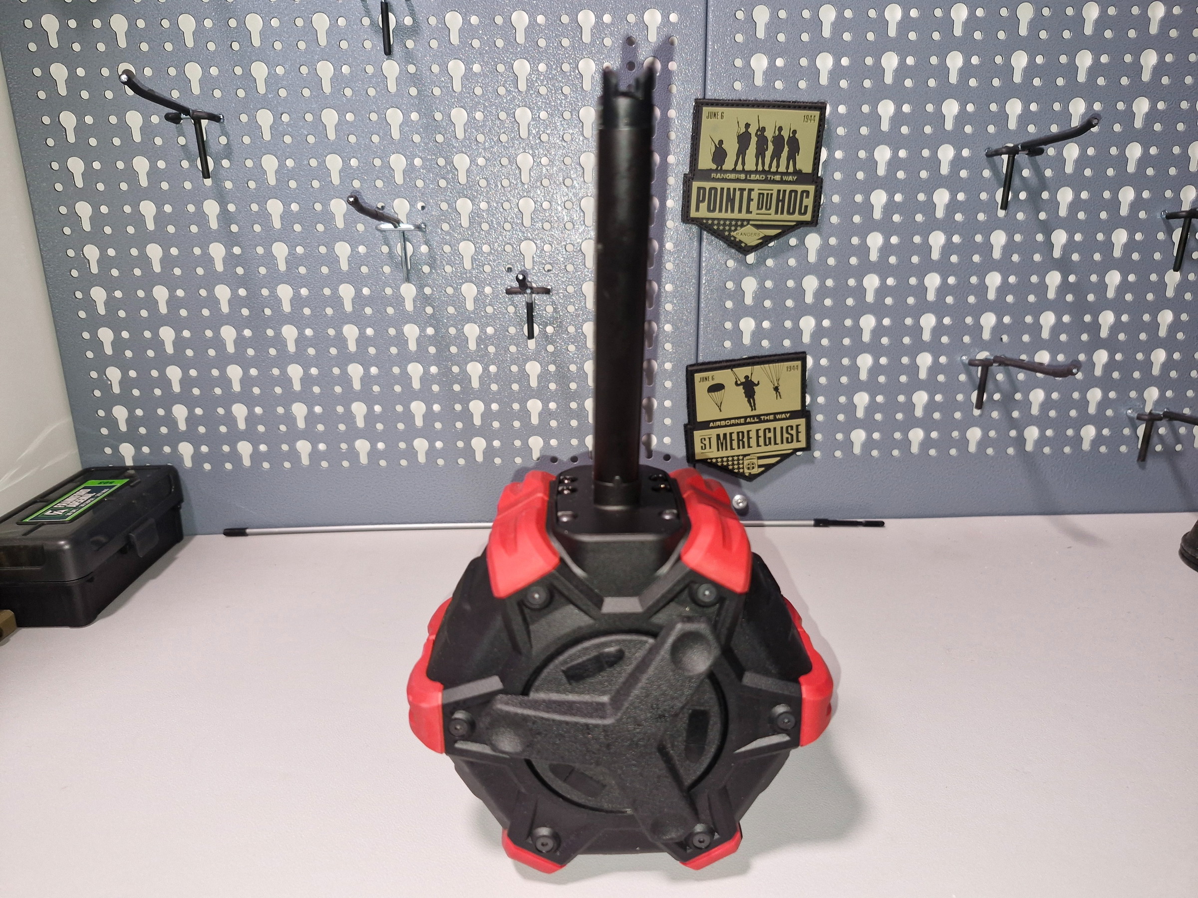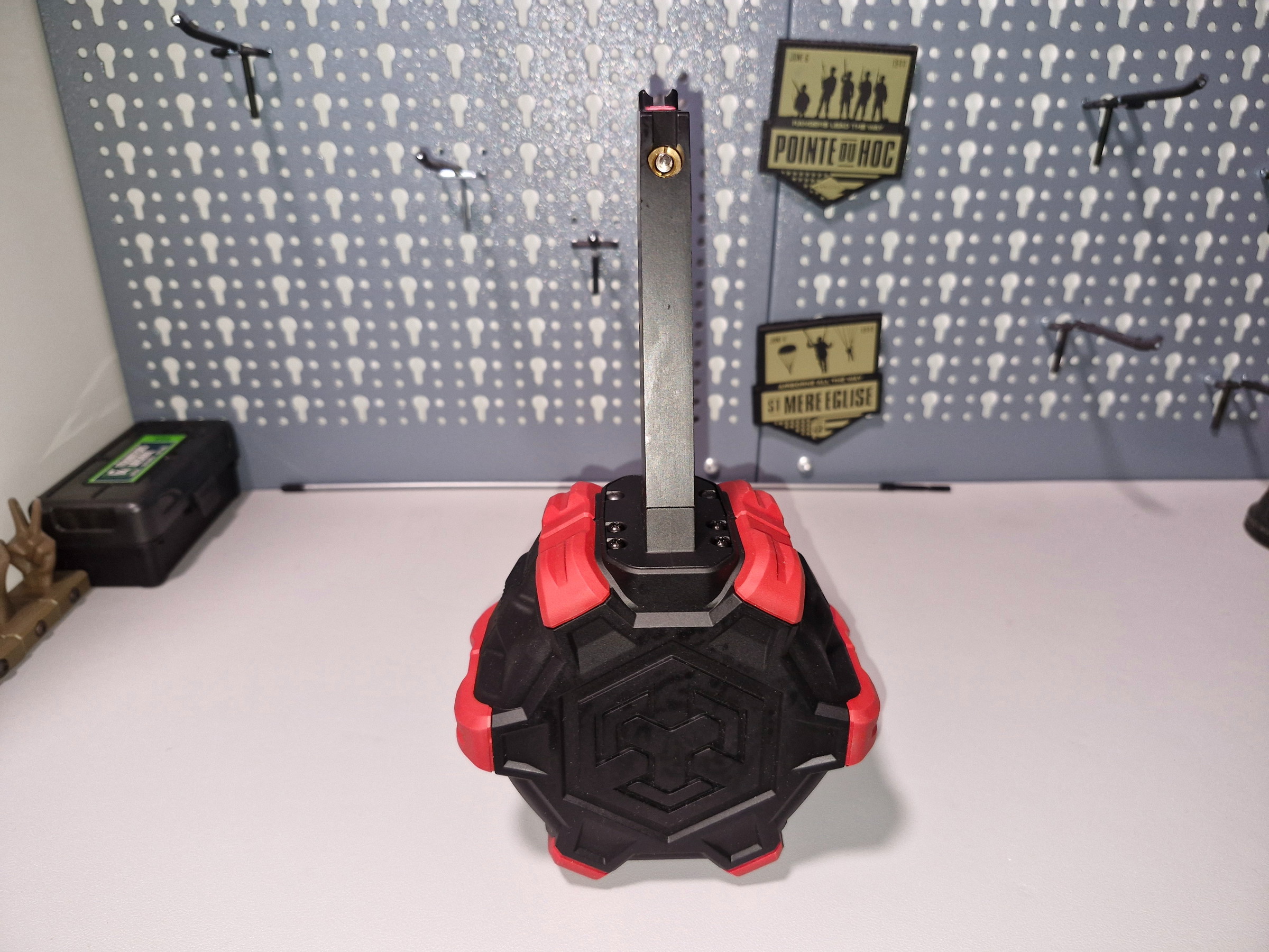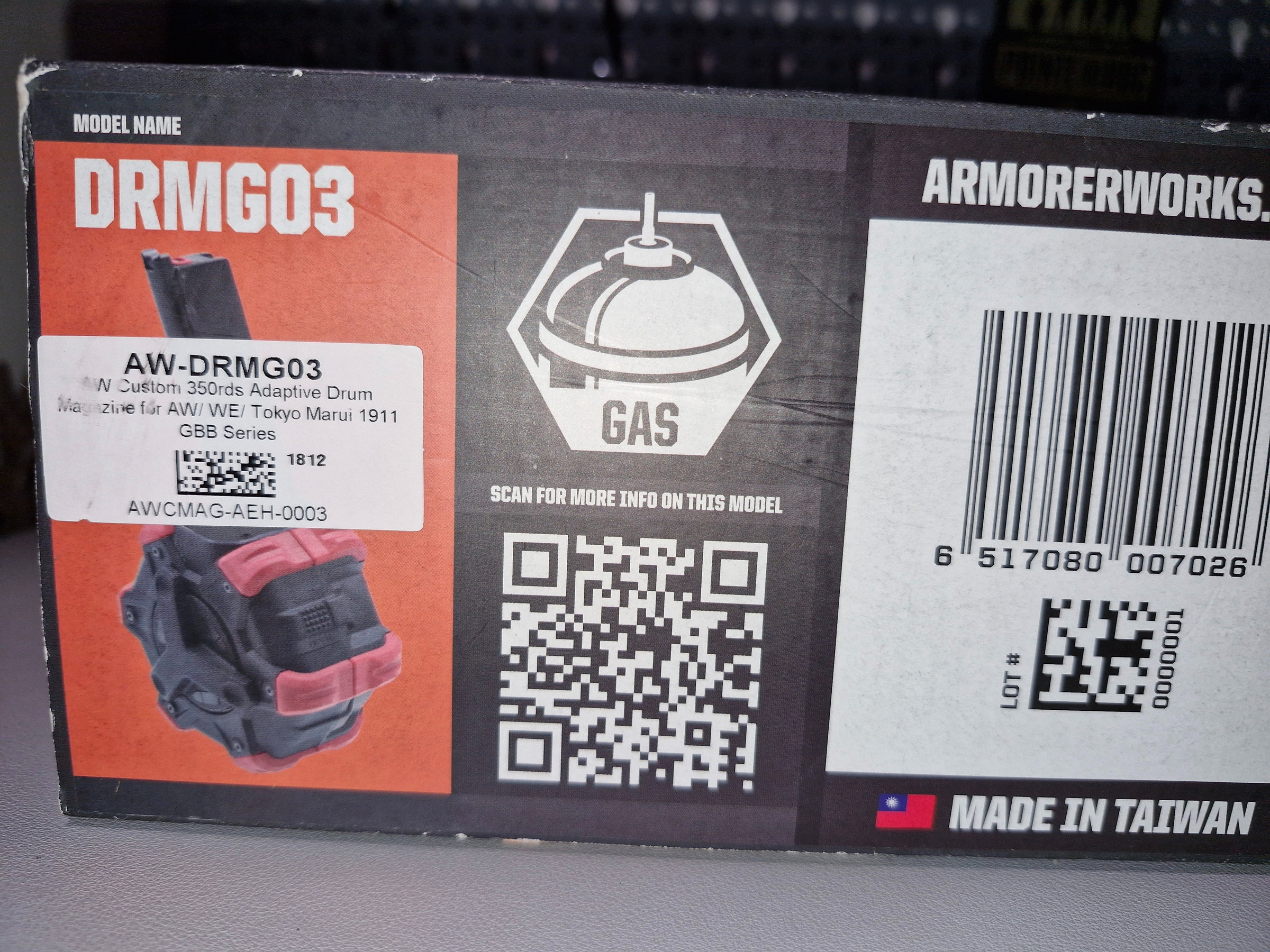 Gloednieuw GBB drummagazijn van AW Custom voor 1911-style pistolen van (in ieder geval) de merken Tokyo Marui, AW Custom en WE.