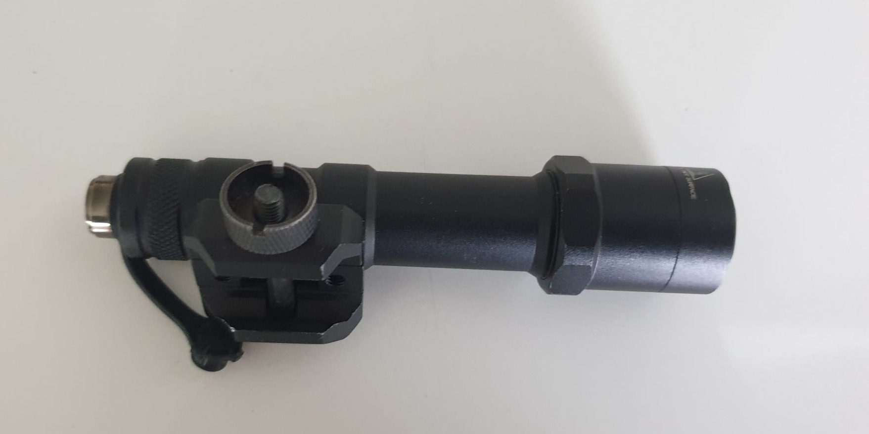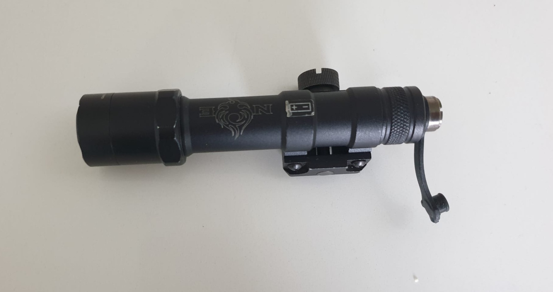 • Naast de lamp bevat de verpakking een Picatinny-railbevestiging (20 mm rail), twee eindkappen en een drukschakelaar met snoer.
