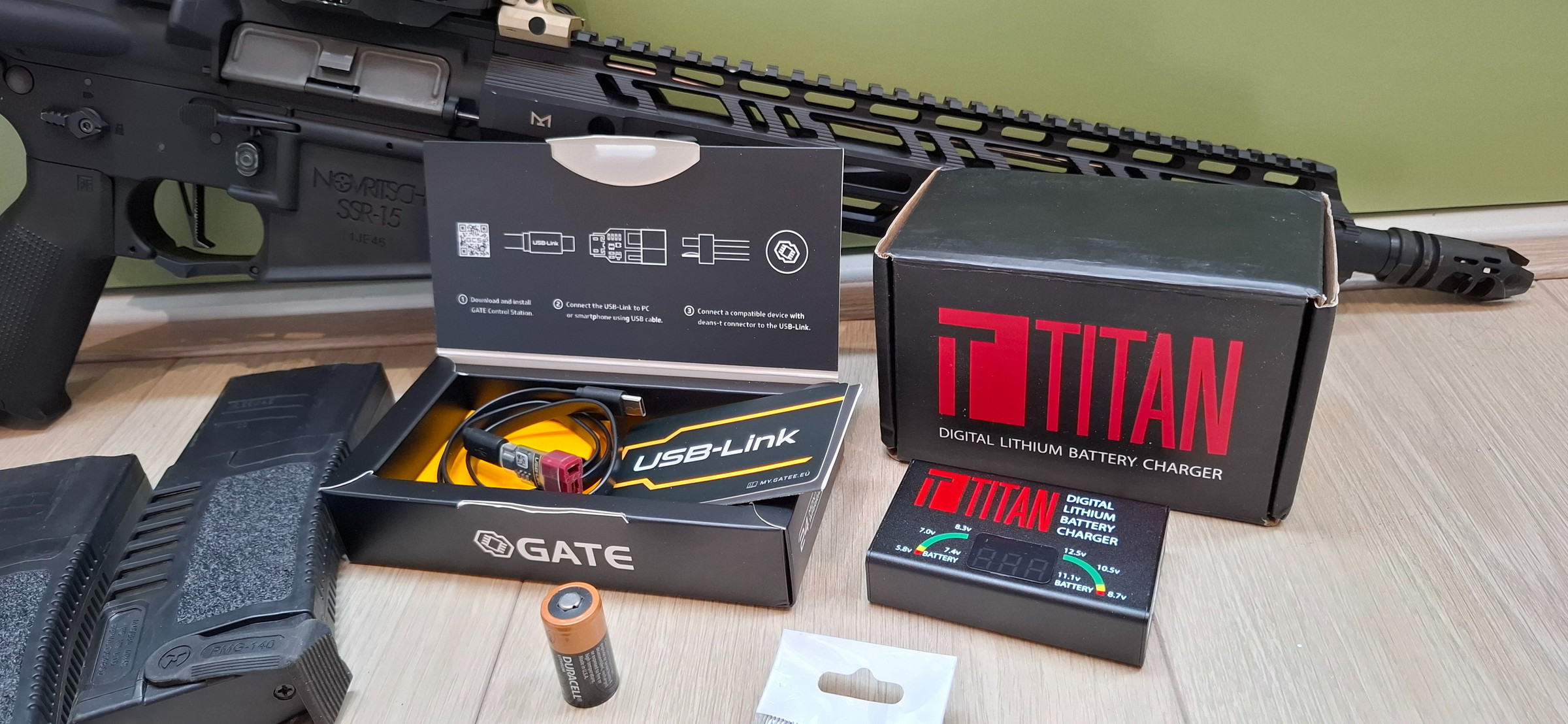 Te koop: Novritsch SSR-15 karabijn (AEG). Recent professioneel schoongemaakt en gearbox ingevet. Schiet soepel, getest op 1,05 J. Inclusief 2 magazijnen, AMG UH-1 Gen I holografisch vizier + flip-to-side Micro 3x magnifier, Titan digital LiPo-charger, Gate Control-station, 1450 LiPo (in Lipo-Guard), koffer, vuller, extra schroeven & tandwieltjes en BB’s (1 fles ongeopend + restje in zak). Klaar om direct te spelen.