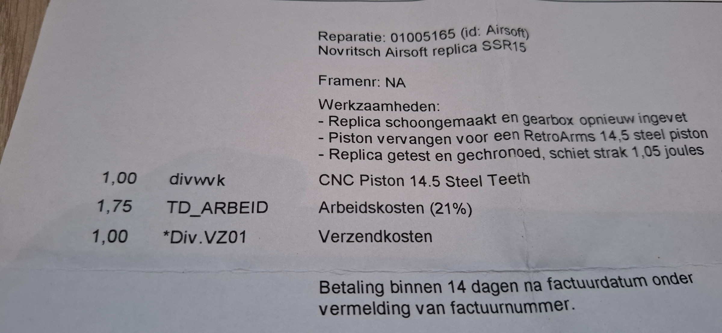 • Piston vervangen door RetroArms 14.5 steel piston (duurzame upgrade).