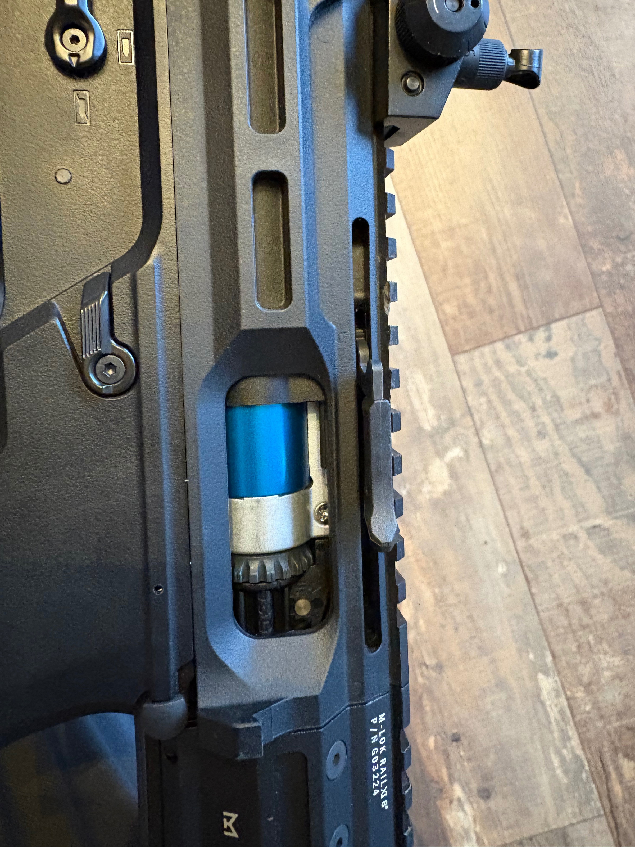 Trigger kan geprogrammeerd worden tussen full auto en 2-round burst.