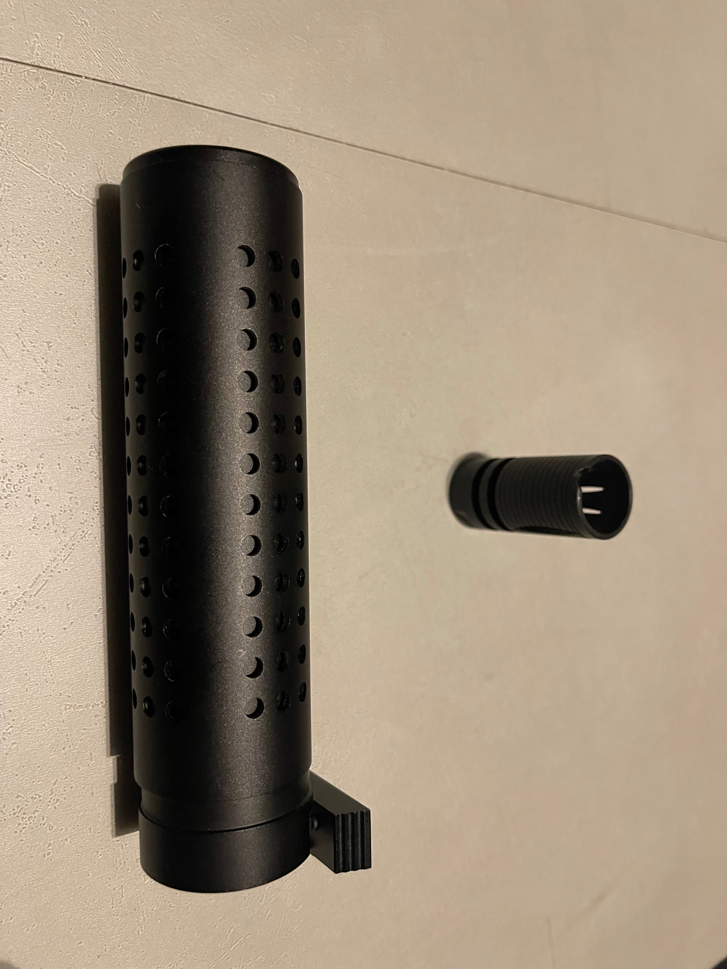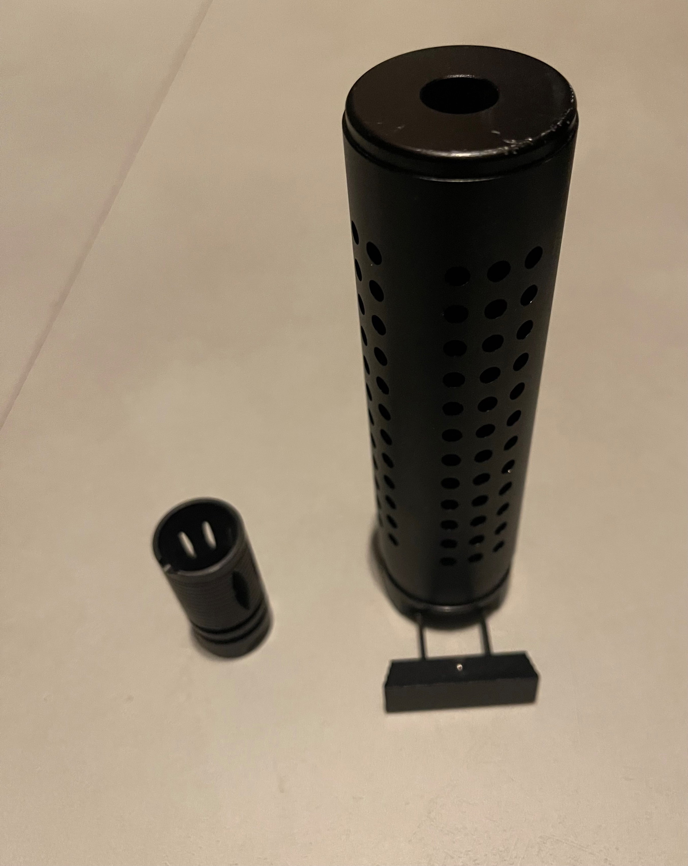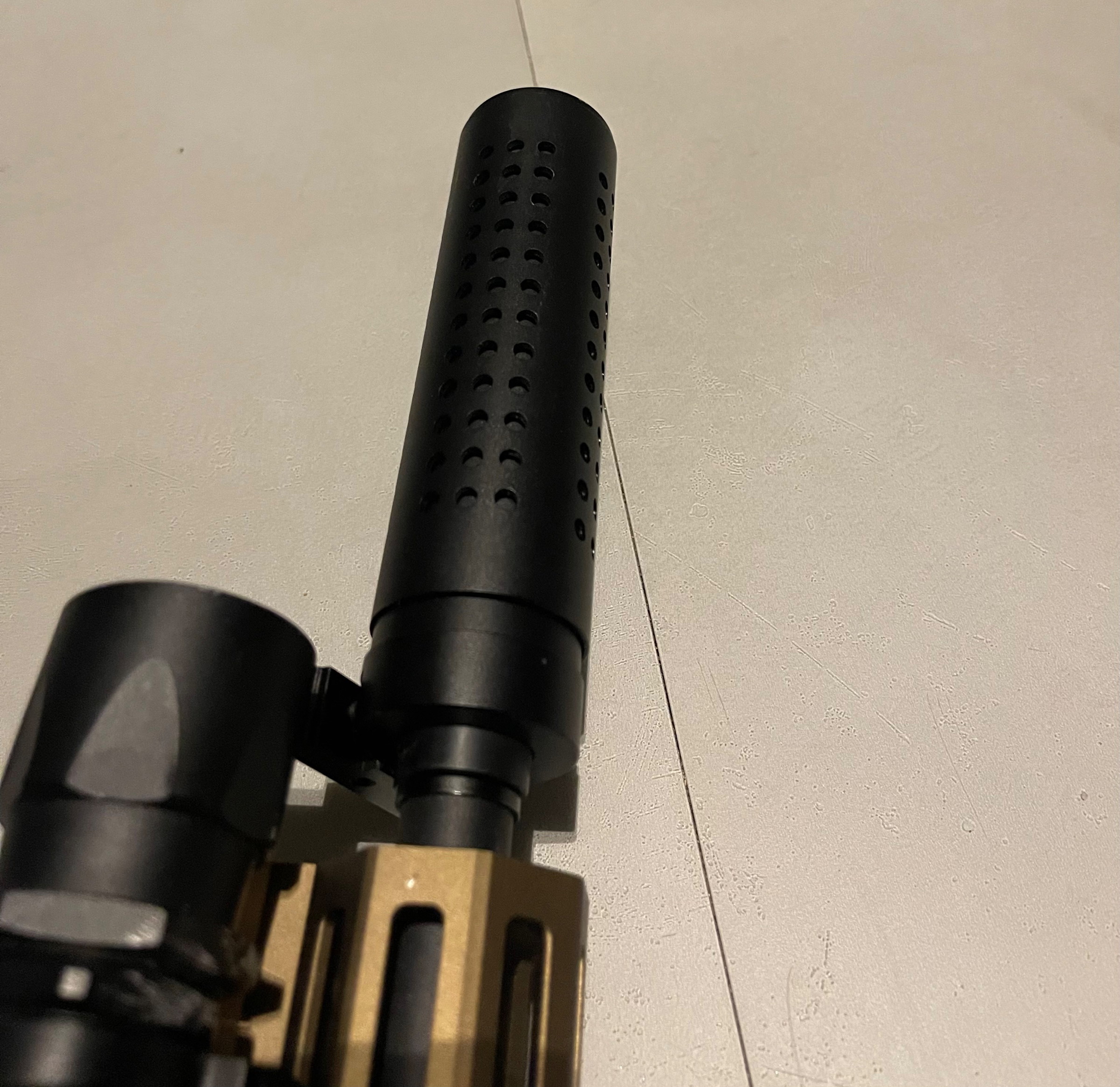 Hierbij verkoop ik een enkele keer gebruikte silencer. Handig en snel te monteren door de qd bevestiging (geen gereedschap nodig) De meegeleverde flashhider heeft 14mm ccw draad wat op de meeste replica’s past.