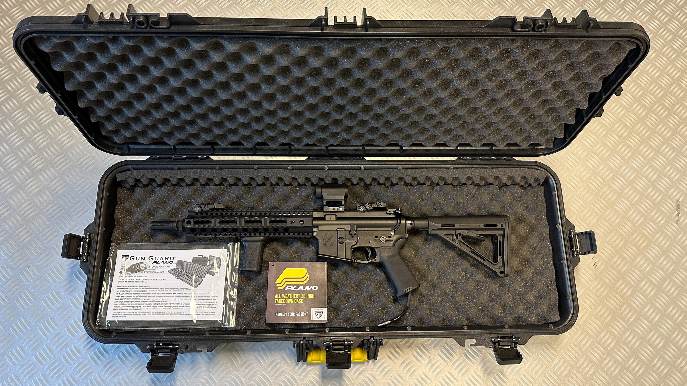 De Plano All Weather 36 inch Series Tactical Rifle Case is ontworpen voor het vervoeren van een modern aanvals- of sluipschuttersgeweer met richtkijker en accessoires.