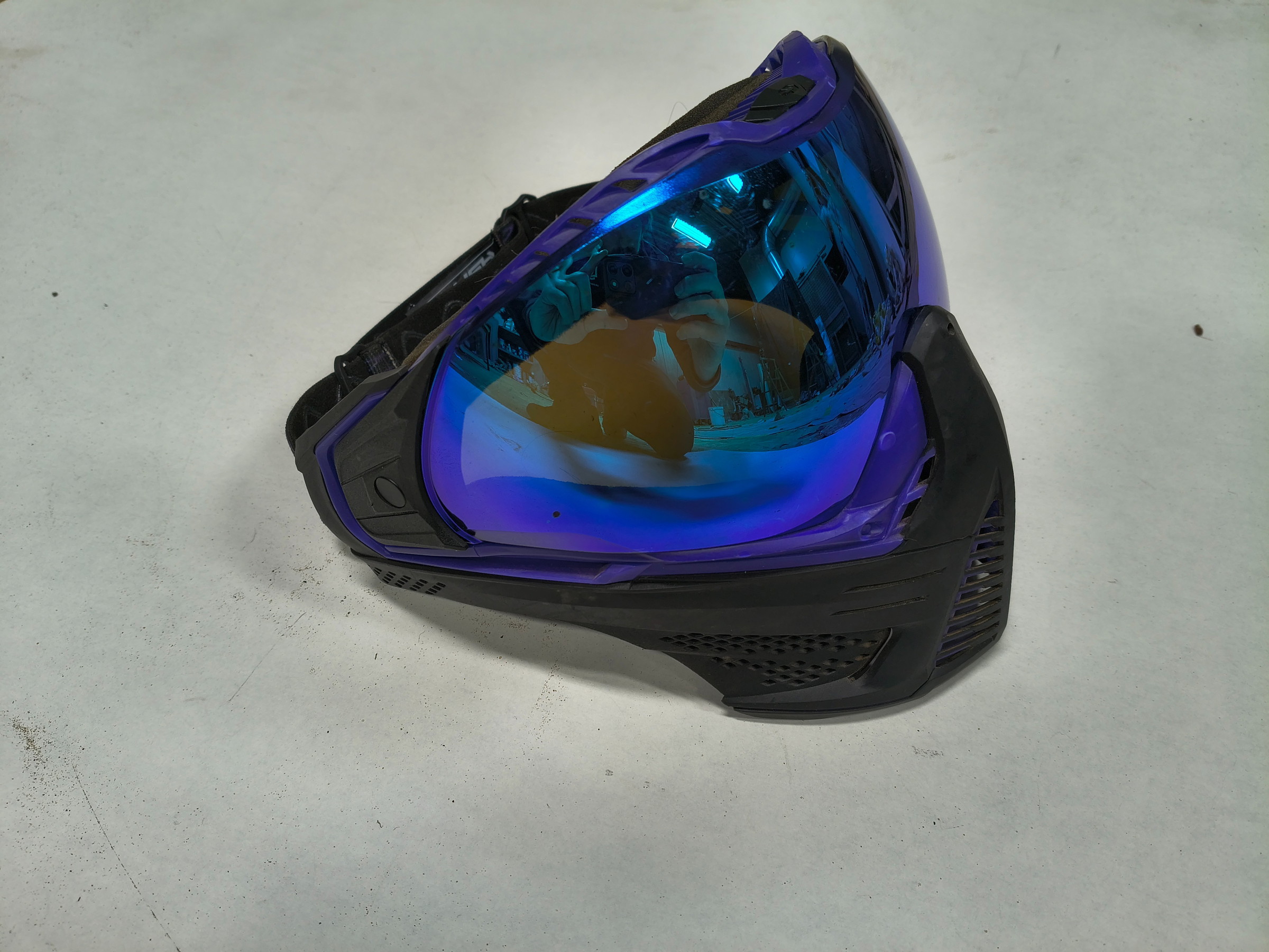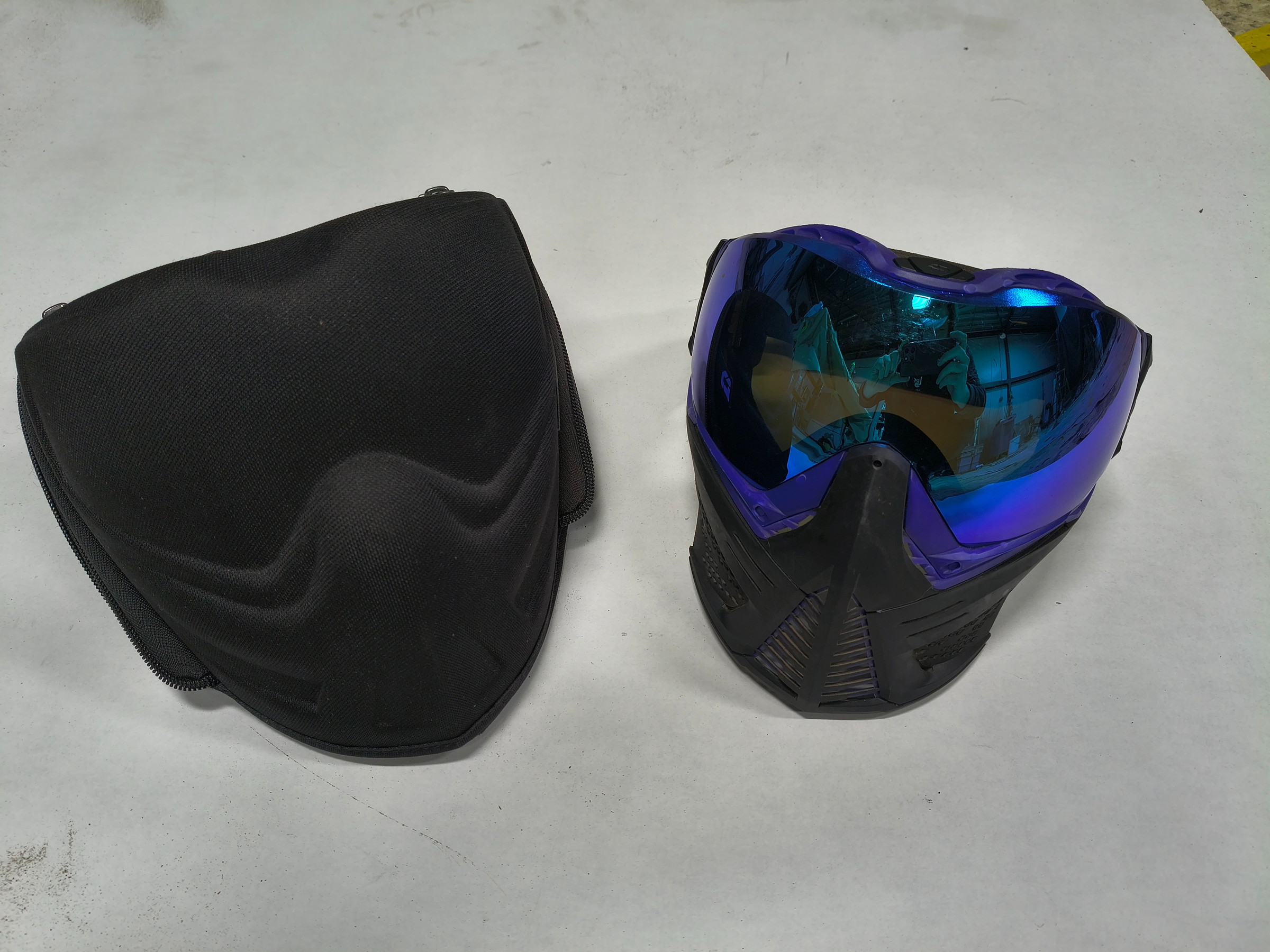 Gebruikte facemask, lens heeft wat plekjes die ik zo goed mogelijk op de foto heb gezet, inclusief hardcase.
