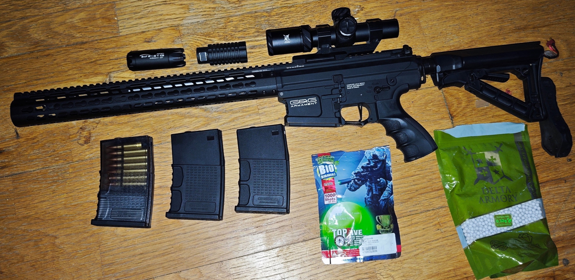 This is a premium, high-performance Airsoft bundle featuring the renowned G&G G2H (TR16 / .308 style). The rifle is unplayed and built with a massive, high-quality full-metal body, giving it an incredibly realistic weight and feel (comparable to cast iron). It is powered by the advanced G2 Gearbox system, providing state-of-the-art electronics and reliability.