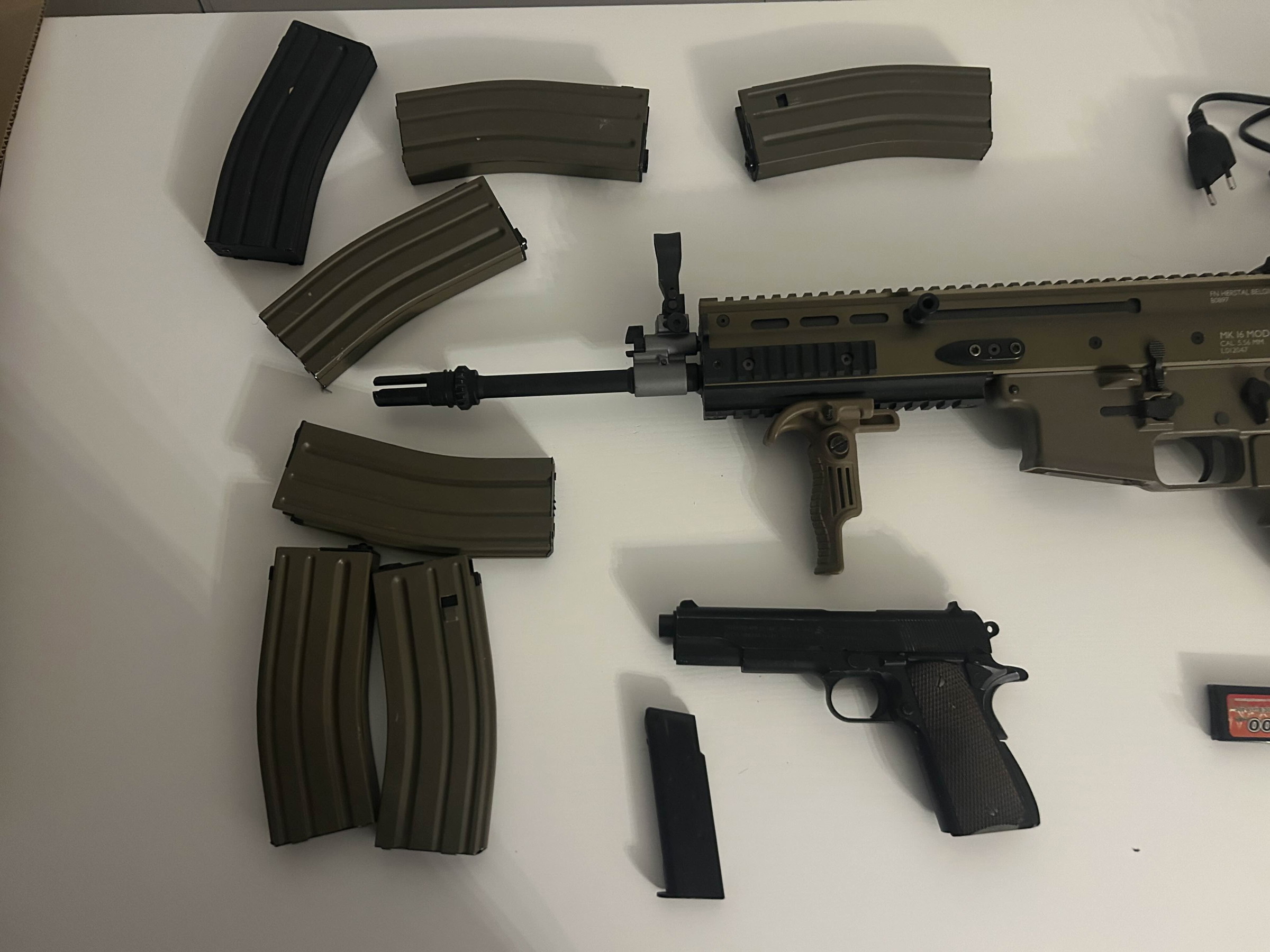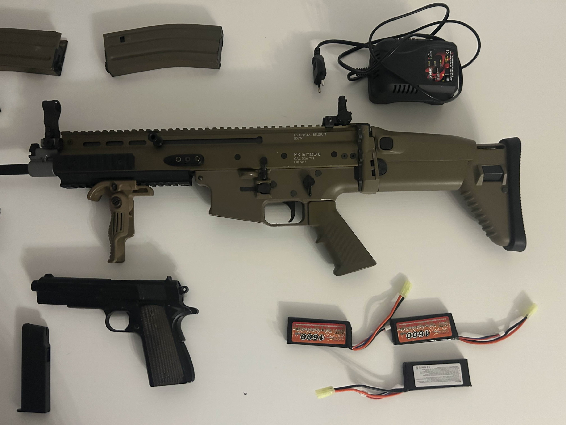 Hello, I am selling this SCAR package with accessories. The package includes a SCAR replica – I’ve only used it 3 times, it’s almost like new. 7 magazines, 3 LiPo batteries with a charger, as well as a small Colt-type pistol and a pistol grip. I’m selling it because I have too many guns at home.