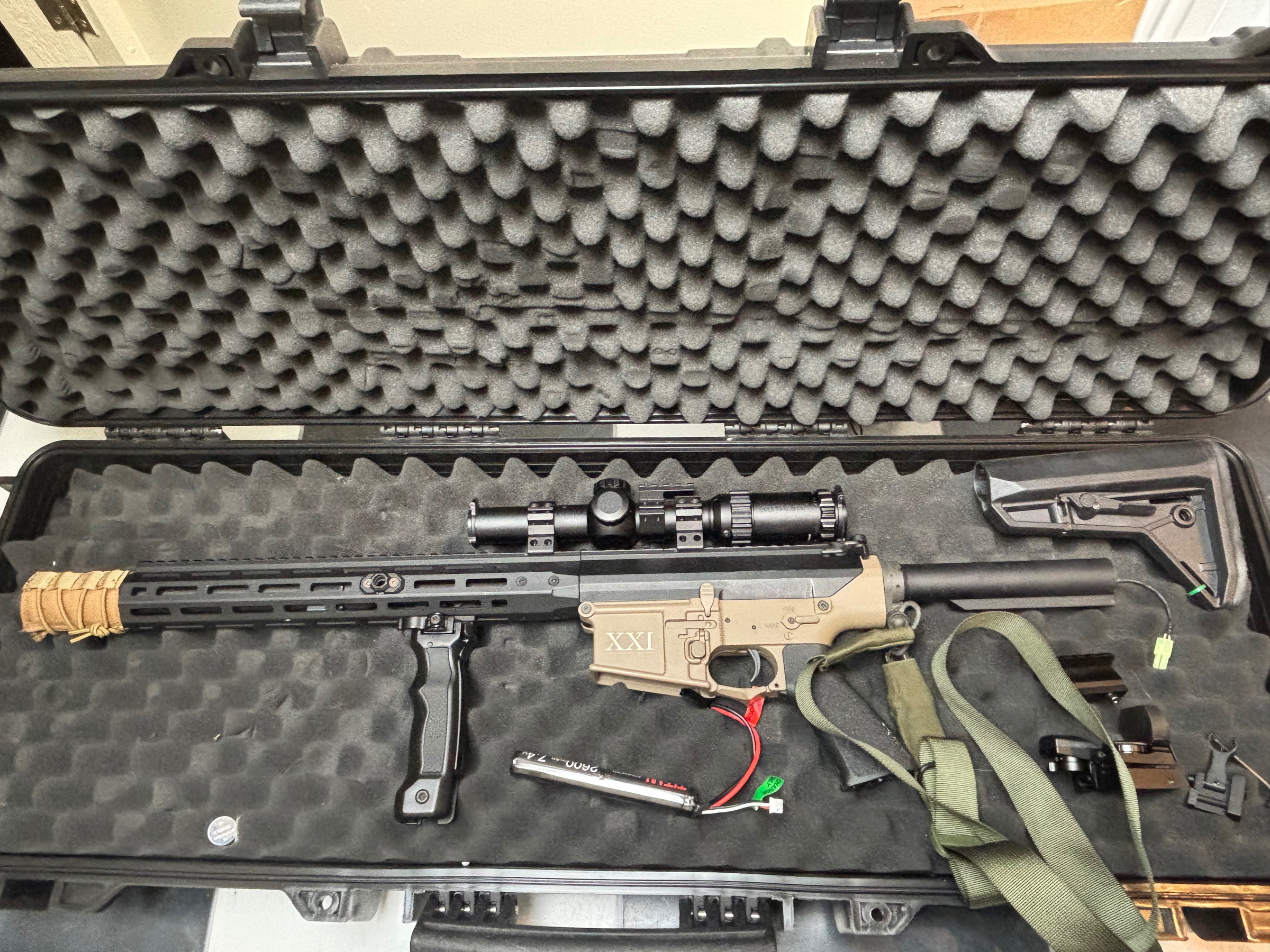 Gloednieuwe DMR: Securor Rapax M1 + 4x Scope, Red Dot Sidemount, handgrip en magazijnen