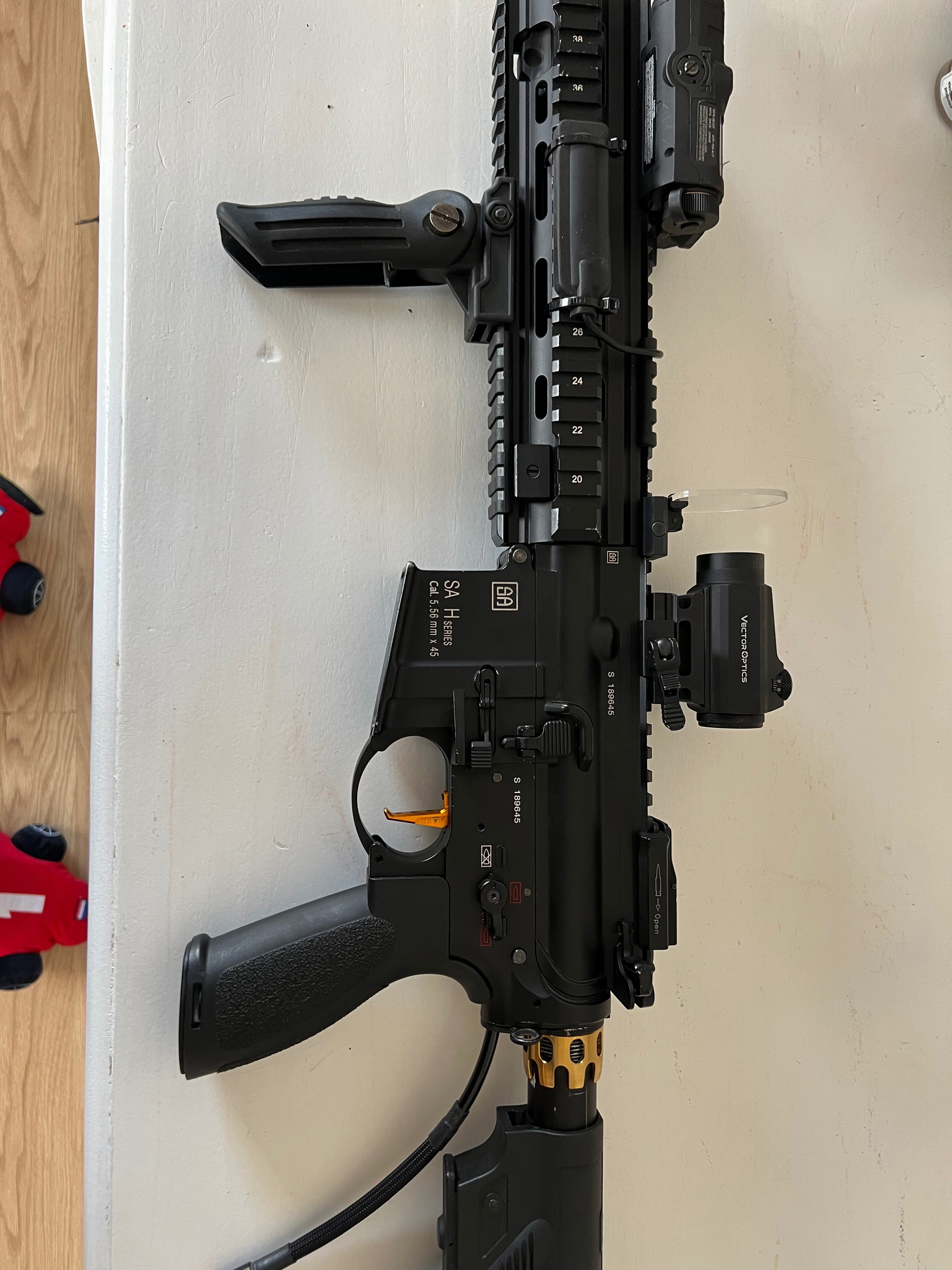 Poosje mee gespeeld maar niet helemaal mijn replica en vandaar ook de verkoop weer in in ternals is een en ander geupgrade onder andere hop up bucking en nub vraag me niet welke of wat want dat weet ik niet ook een lekkere max trigger