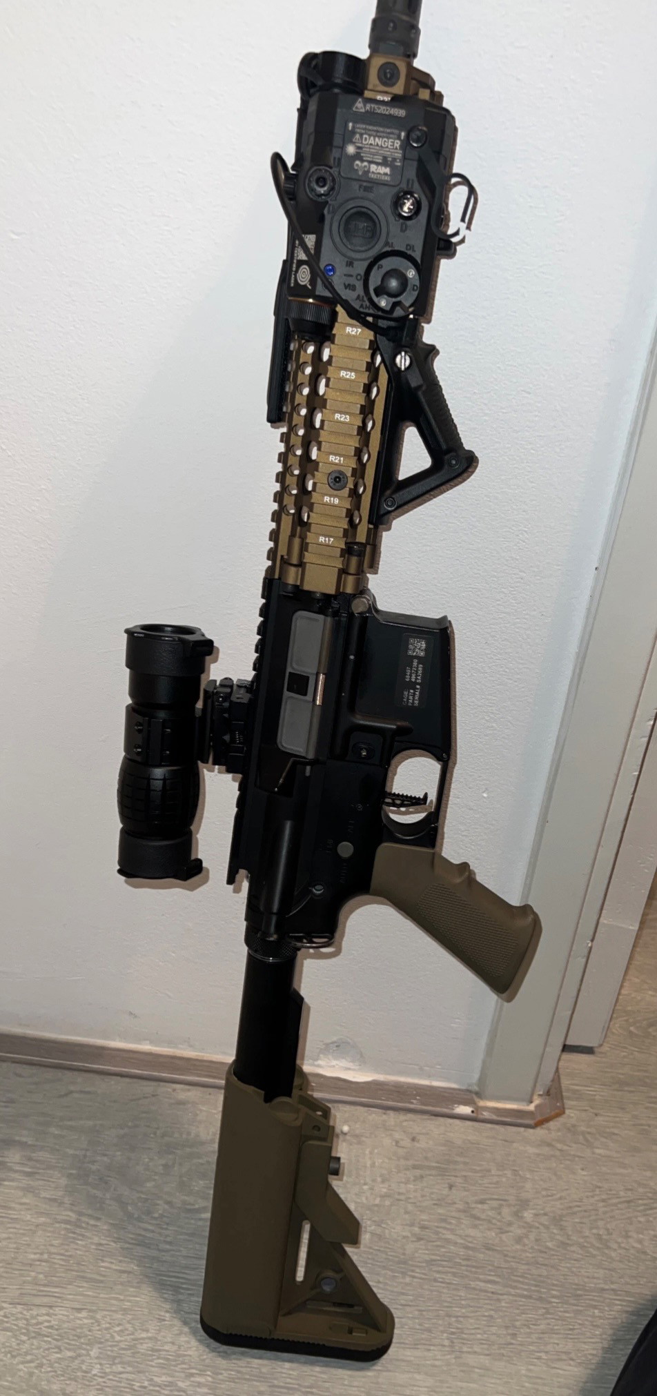 Hierbij verkoop ik mijn Specna Arms mk18. Alles werkt zoals het hoort. Hij schiet recht en ver. Enige wat mist is de trek dingens waar dan zogenaamd je kogels mee kan laden. Dit heeft geen invloed en was er alleen voor de sier op de replica ( zie foto 2)