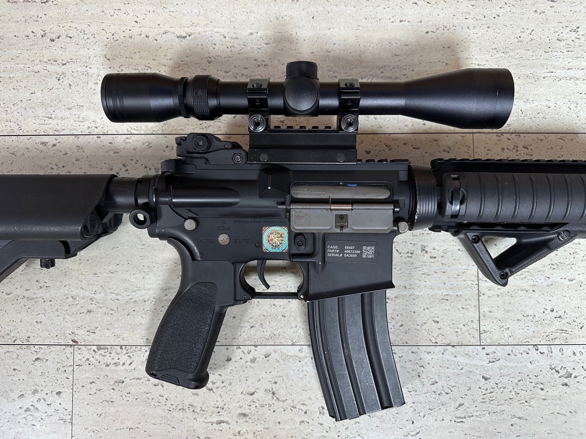 gebruikte maar nog steeds nette RRA SA E03 inclusief 3x real steel magazijnen, batterijen, 2 x scoop en voorzien van een Perun AB++ mosfet