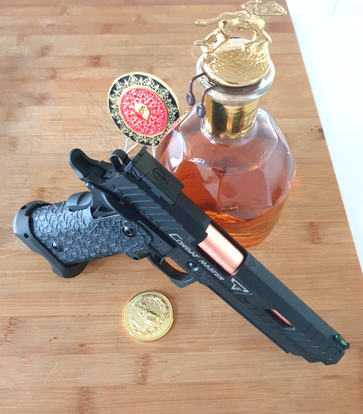 De "Combat Master"  is een airsoft pistool, vaak gebaseerd op de TTI 2011 van John Wick, en staat bekend om zijn realistische uitstraling en hoge prestaties. Het is verkrijgbaar in verschillende varianten, waaronder gas blowback (GBB) en beschikt over kenmerken zoals een agressieve gripstippeling voor een betere grip en een vergrote magwell voor snellere magazijnwissels.