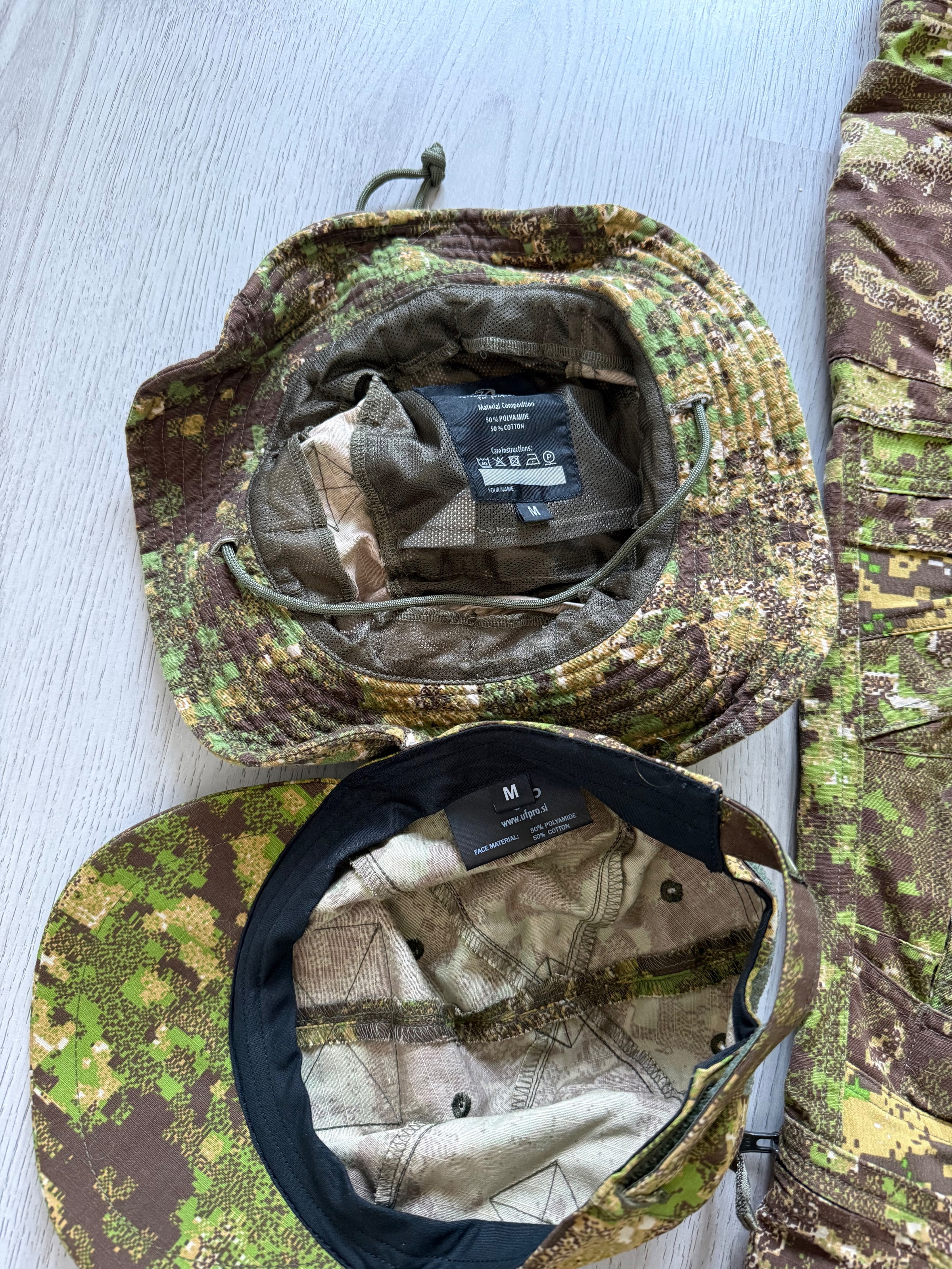 Mooie set van het merk ufpro. Pencott greenzone camo van ufpro wordt niet meer gemaakt. Dit is een mooie complete set met combat shirt en broek, boonie en een petje.