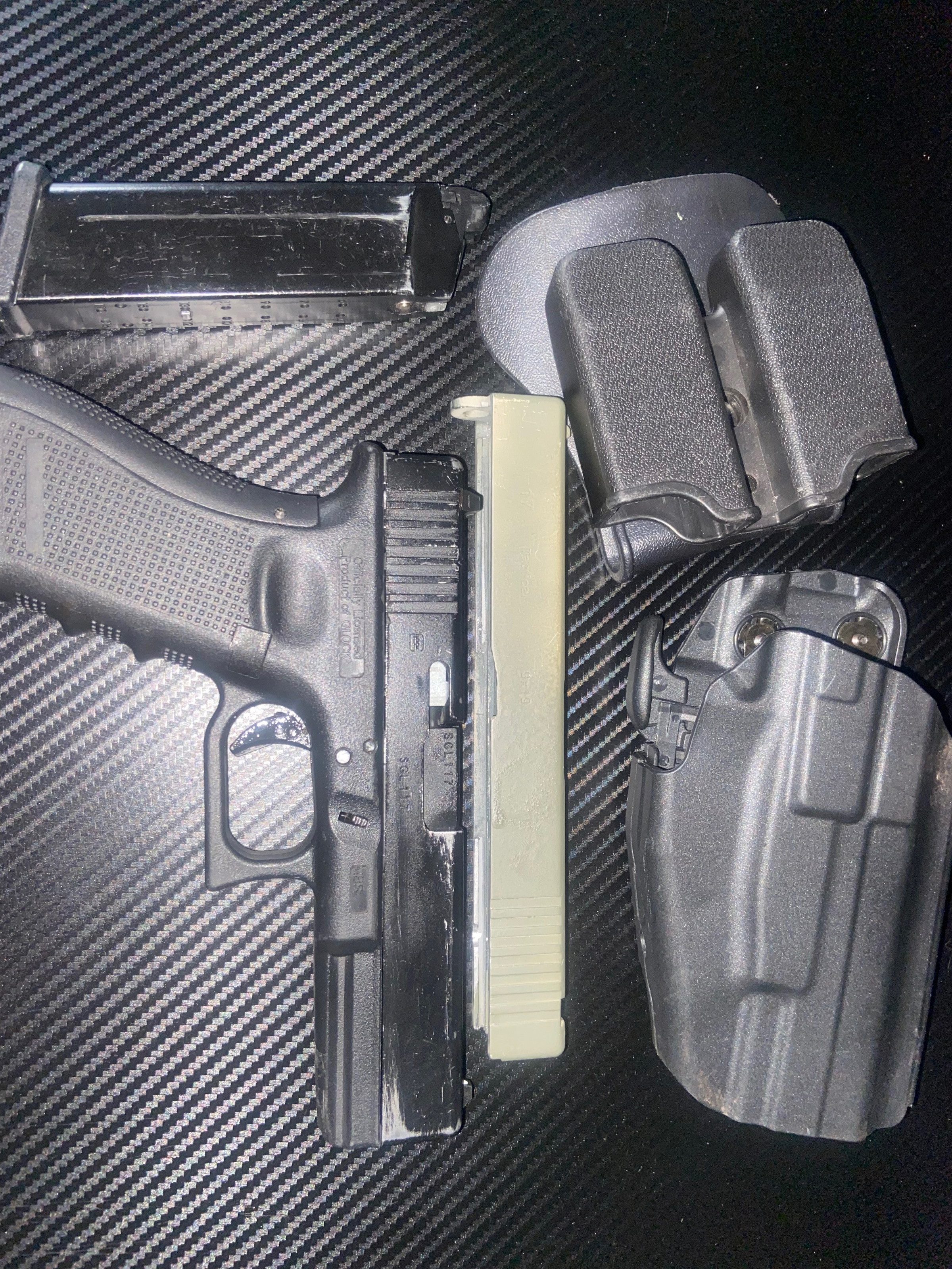 Er zitten wel wat gebruik sporen op de slede ivm de holster in/uit verder loopt die soepel,