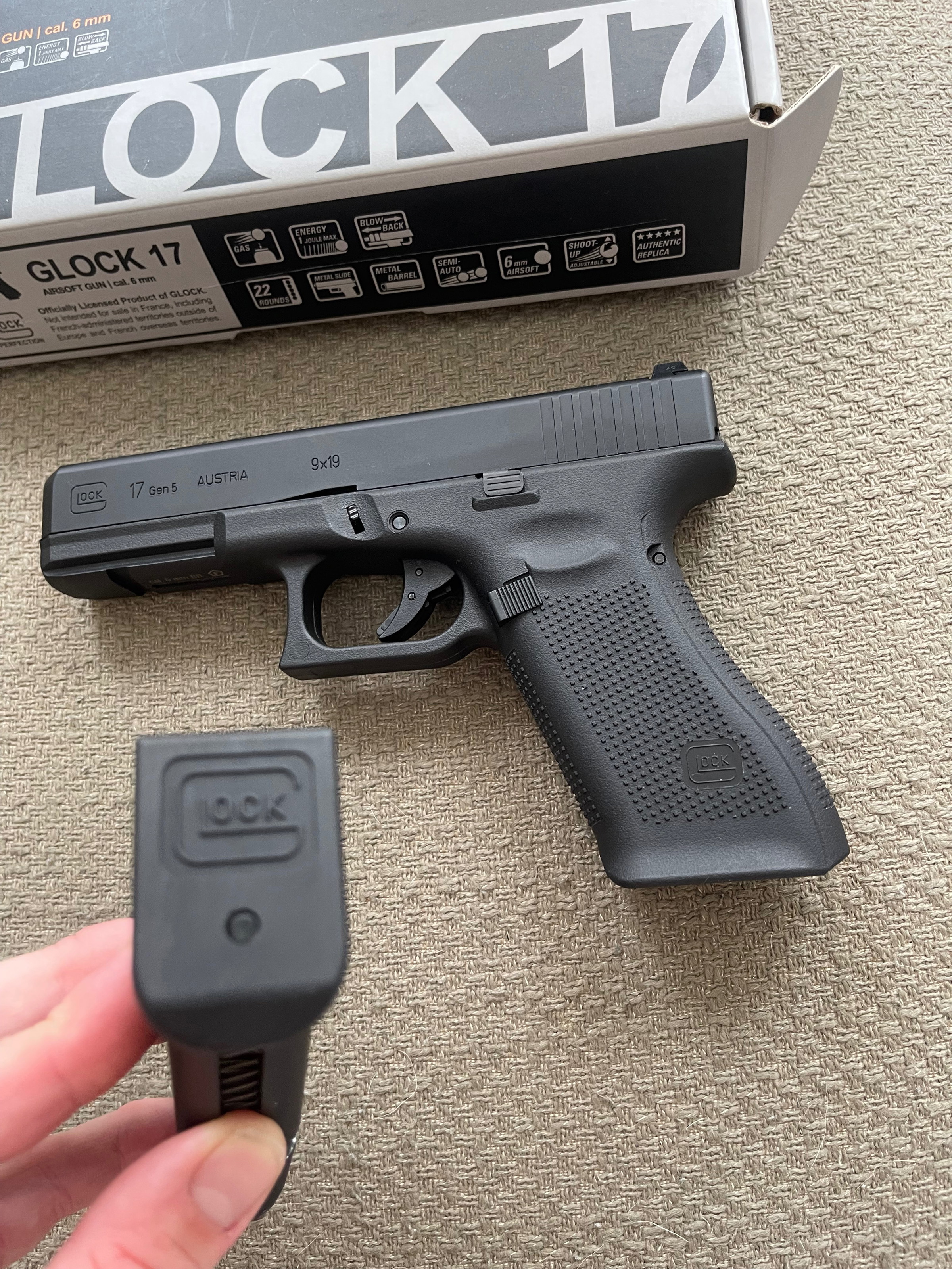 Deze Glock 17 gen 5 gas blowback is werkelijk zo goed als nieuw, er is 1 a 2 keer een paar magazijnen leeg mee geschoten in de achtertuin maar verder dan dat heeft hij meer stil gelegen.