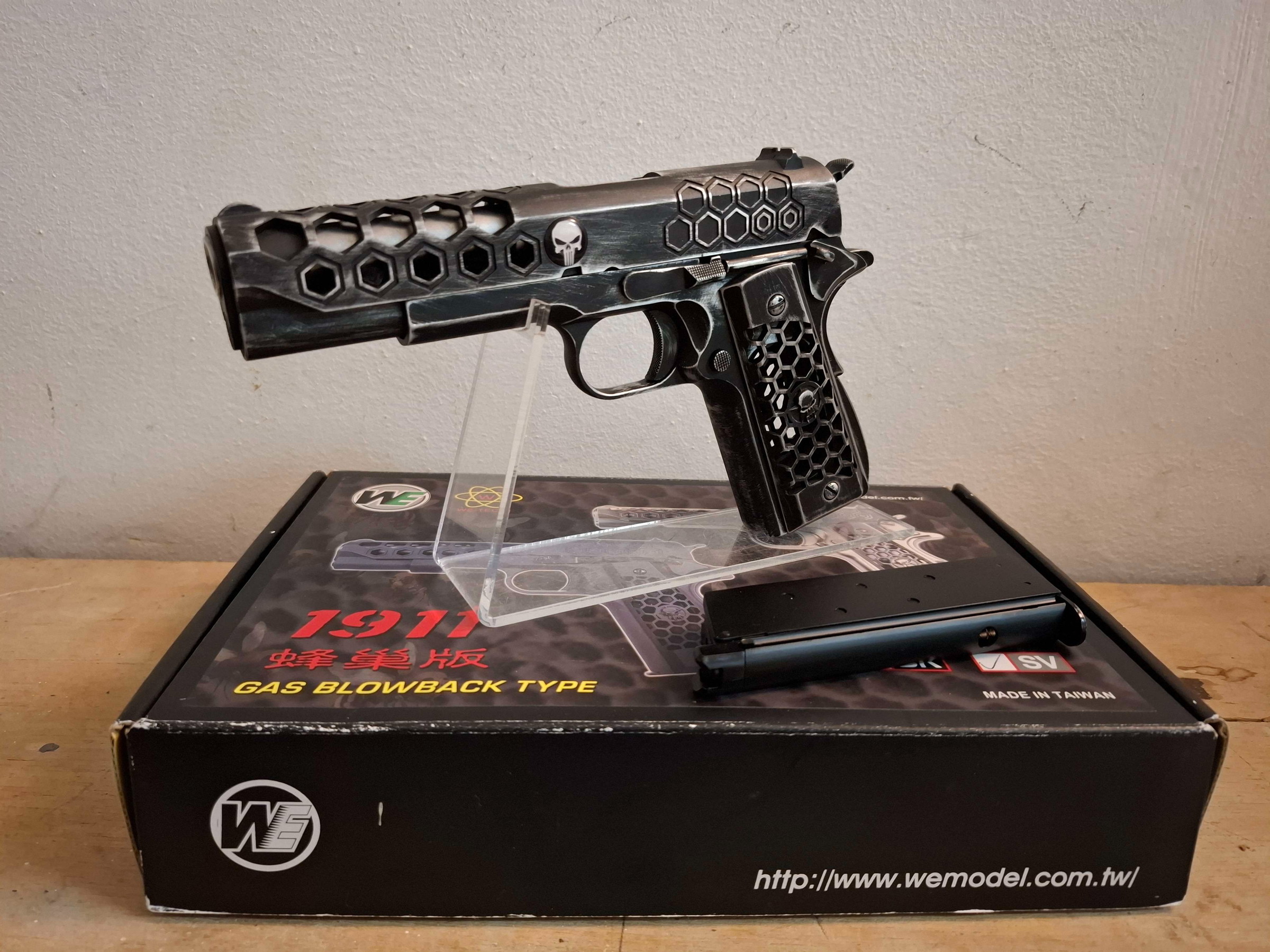 Te koop: WE M1911 met Punisher customization.