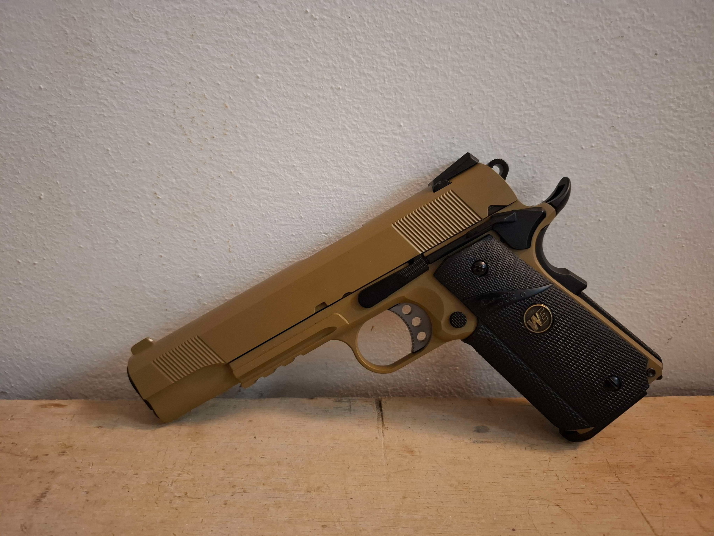 Te koop: Nieuwstaat WE M1911A1 MEU SOC in Desert Tan