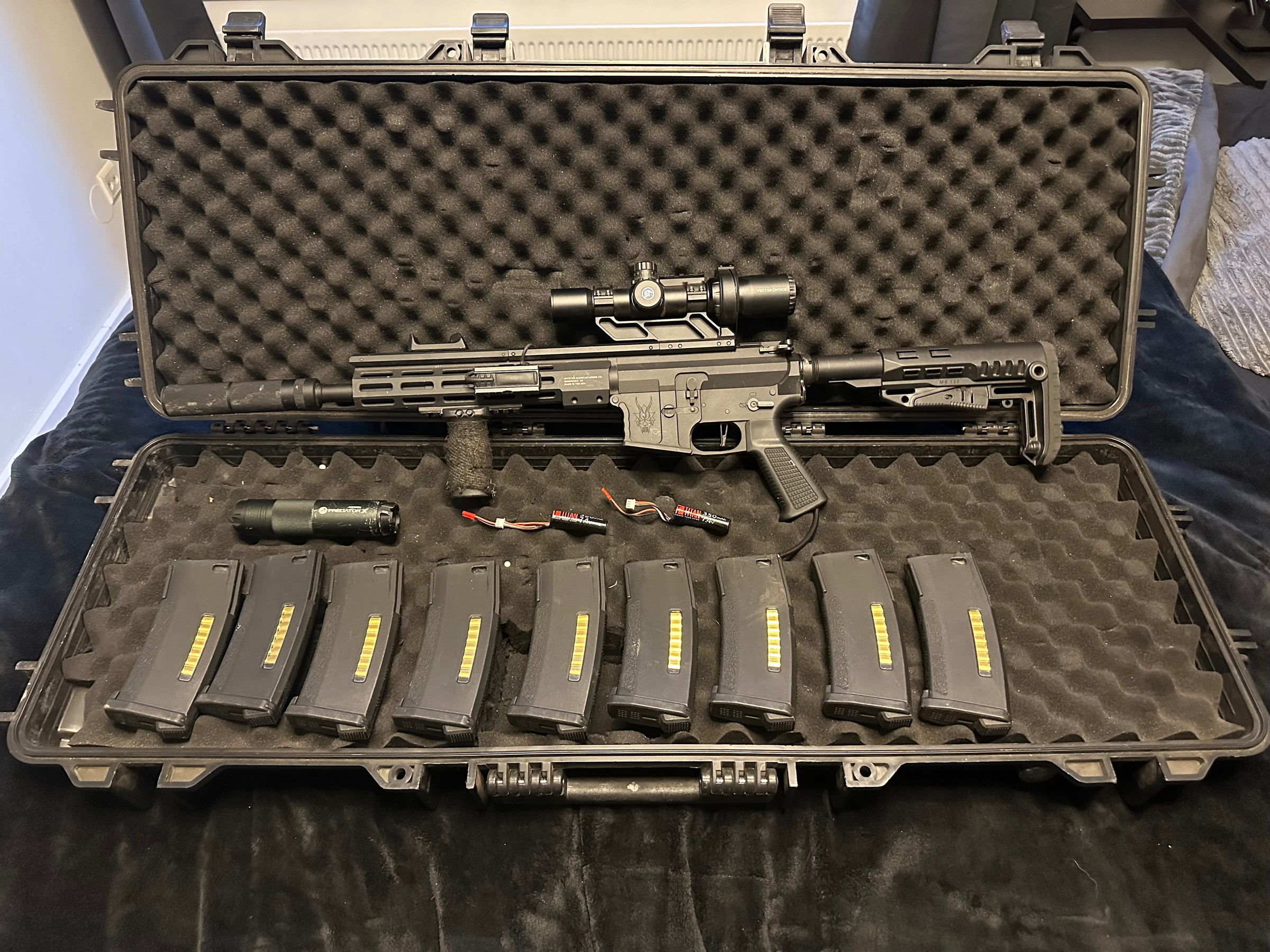 Deze complete wolverine mtw met 9 magazijnen komt tekoop. Hij werkt echt perfect maar ik wil volledig overstappen naar sniper dus vandaar dat hij tekoop komt.